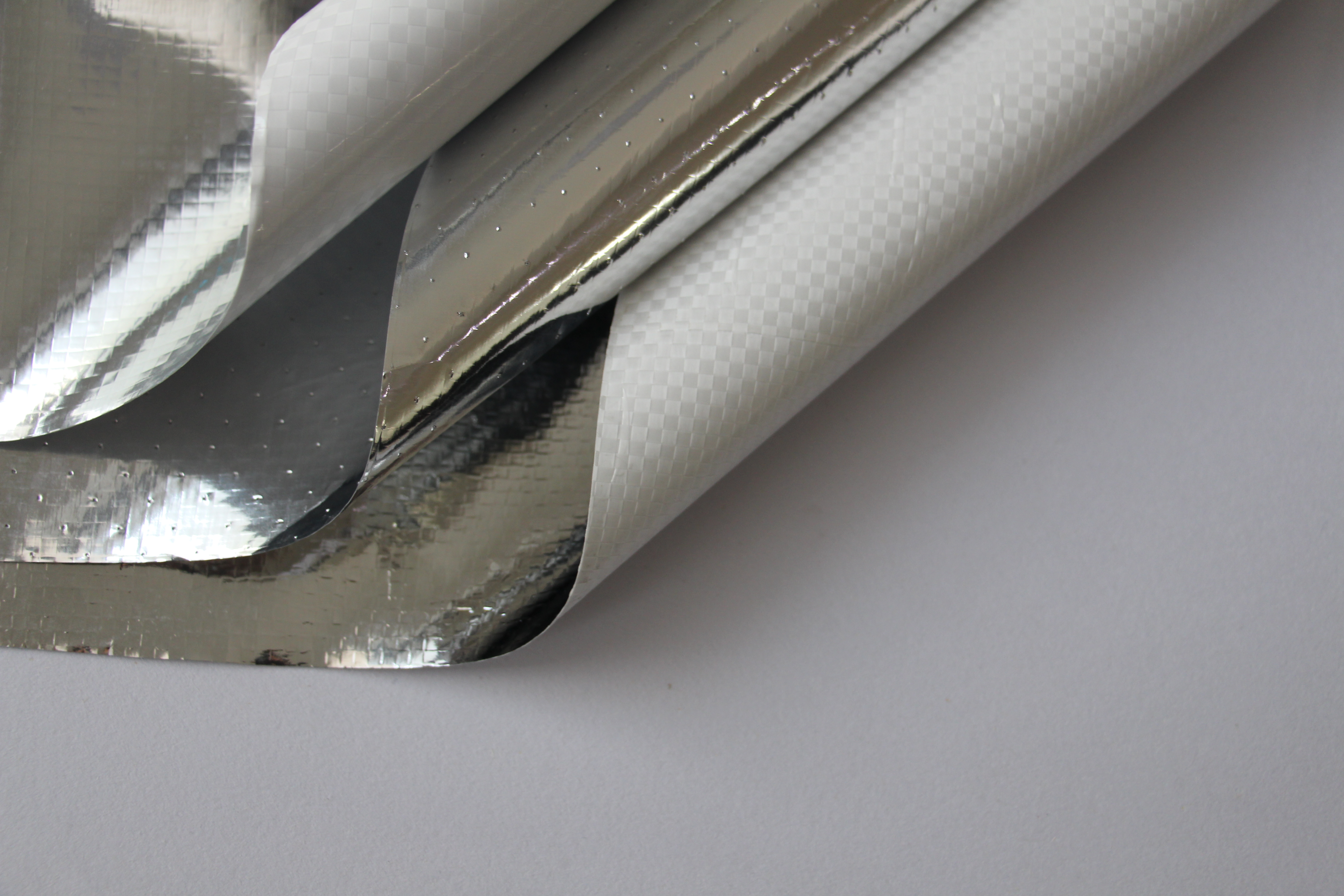 Bu çift taraflı varyant, PE dokuma kumaşın her iki tarafına lamine edilmiş alüminyum folyo içerir ve gelişmiş yansıtma ve dayanıklılık sunar. Fabrikalar, depolar ve metal çatılı yapılar gibi zorlu ortamlara uygun hale getiren çift taraflı termal yalıtım ve buhar bariyeri koruması sağlar.